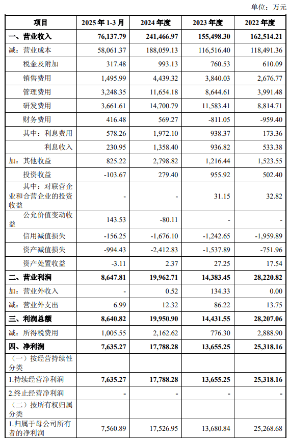 报告期各期,公司营业收入分别为16.25亿元、15.55亿元、24.15亿元、7.61亿元;同期实现归母净利润分别为2.53亿元、1.37亿元、1.75亿元、7560.89万元。
