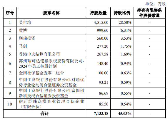 截至2025年3月31日,公司股本总数为158,419,873股,其中公司前十大股东持股情况如下表所示: